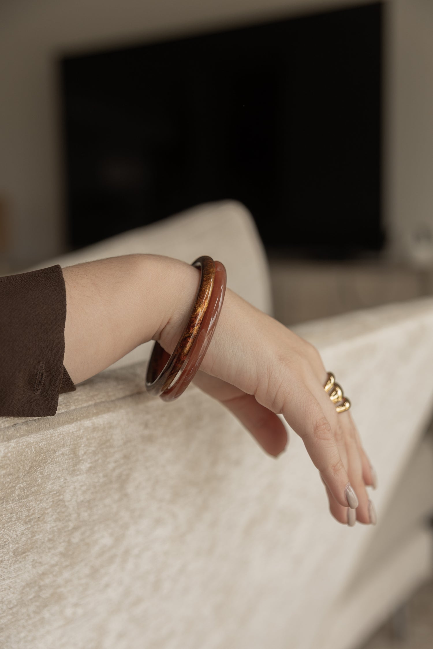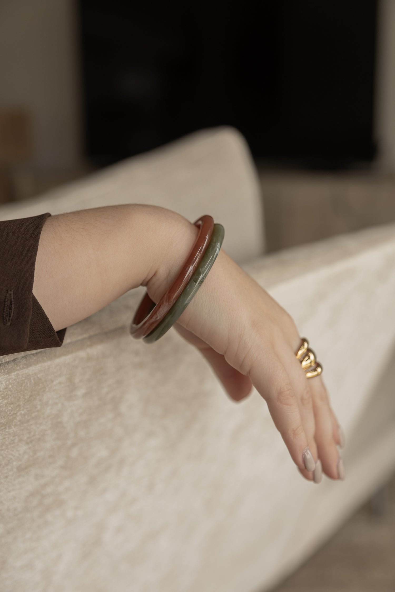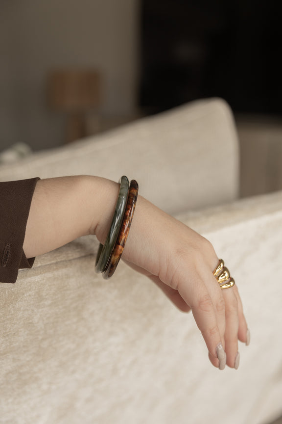 Le lot Ambra réunit 2 bracelets fins en résine, aux lignes élégantes et intemporelles. Leur design minimaliste apporte une touche discrète mais raffinée, idéale à porter au quotidien ou pour sublimer une tenue habillée.