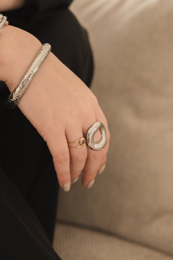 La bague Aurélia ne passe pas inaperçue ! Avec sa forme ovaloïde originale et son design argenté en acier inoxydable, elle impose son style avec élégance. Réglable, elle s’adapte à toutes les tailles de doigt et se porte fièrement comme la pièce forte de vos looks.