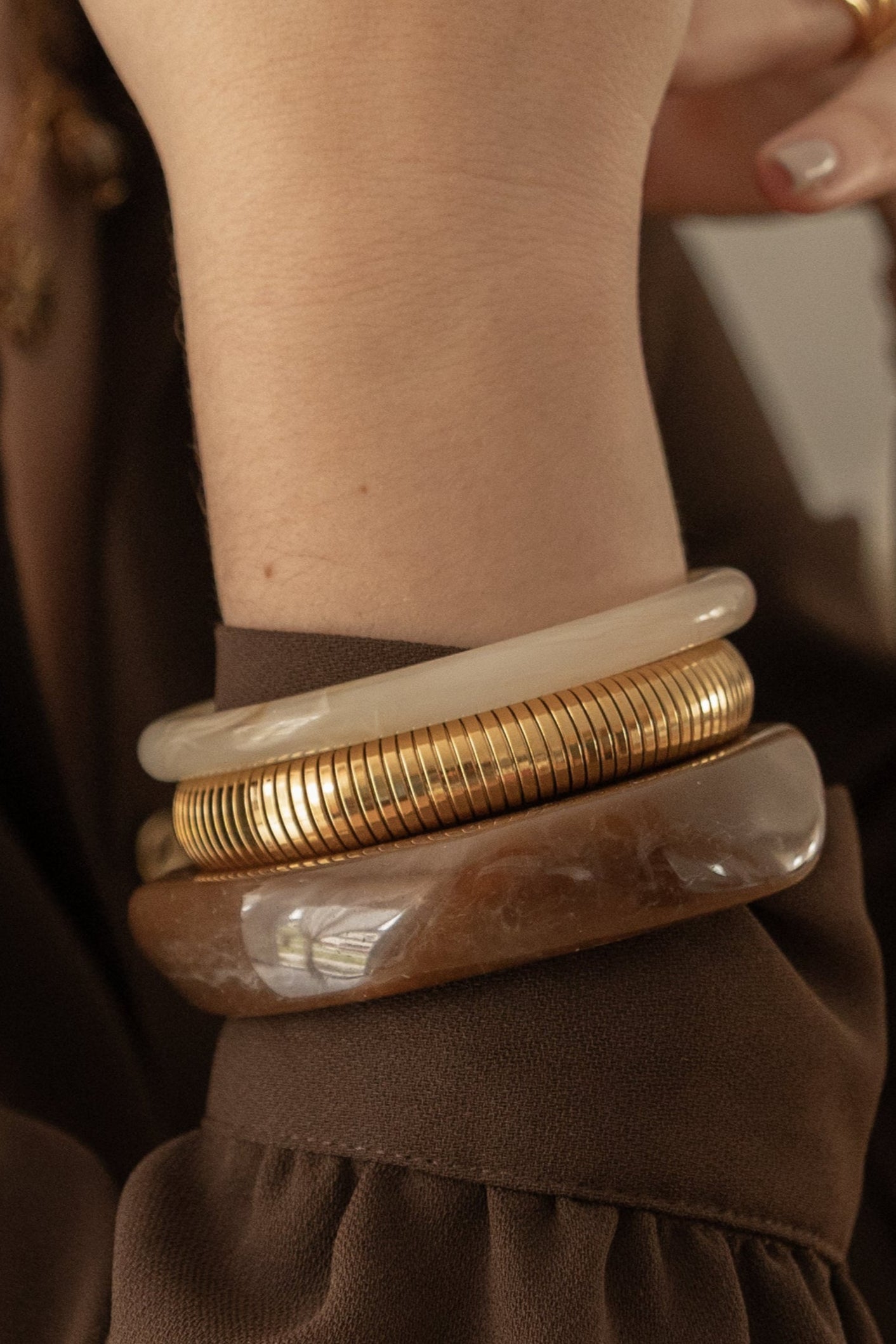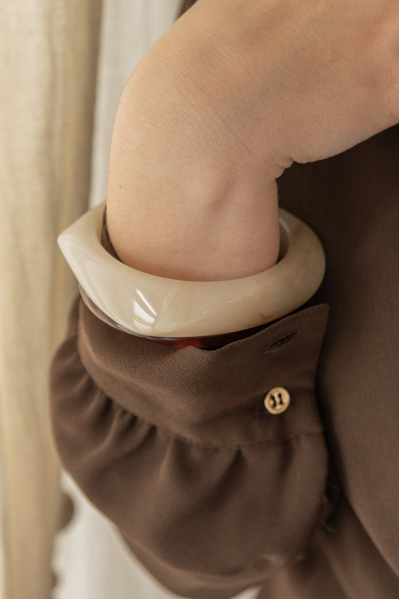Élégant et intemporel, le jonc Bruna en résine marron glacé ou blanc cassé apporte une touche raffinée à toutes vos tenues.