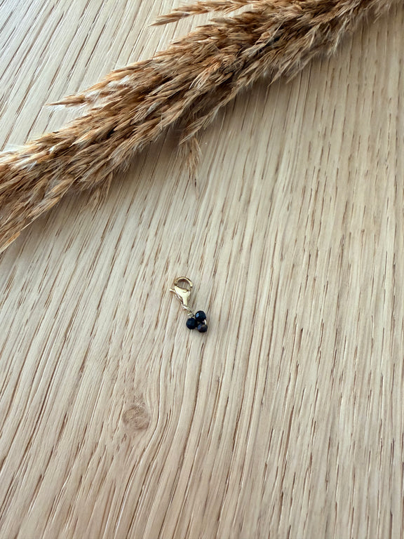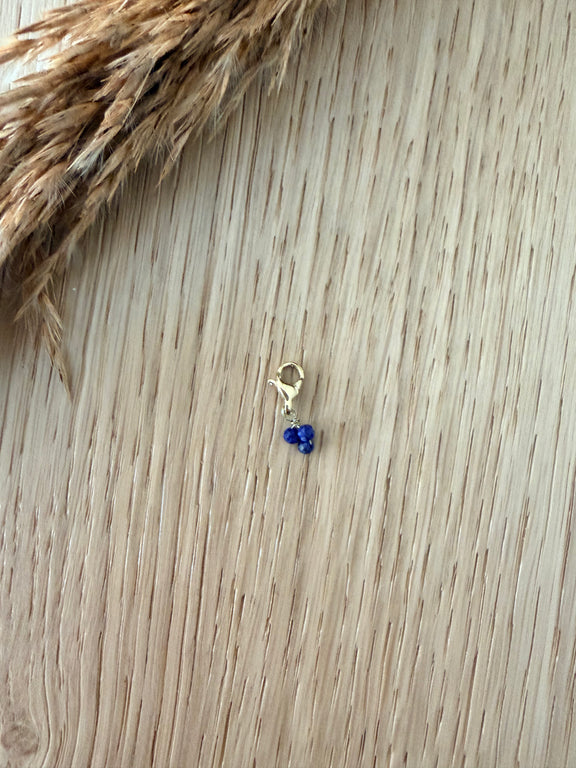 Un charm délicat composé de 3 perles en pierre naturelle, disponibles en Onyx noir profond 🖤 ou en Lapis Lazuli bleu intense 💙. À clipser, accumuler et mixer pour donner de la couleur et du caractère à tes bijoux. Chaque pierre étant unique, ton charm sera aussi singulier que toi.