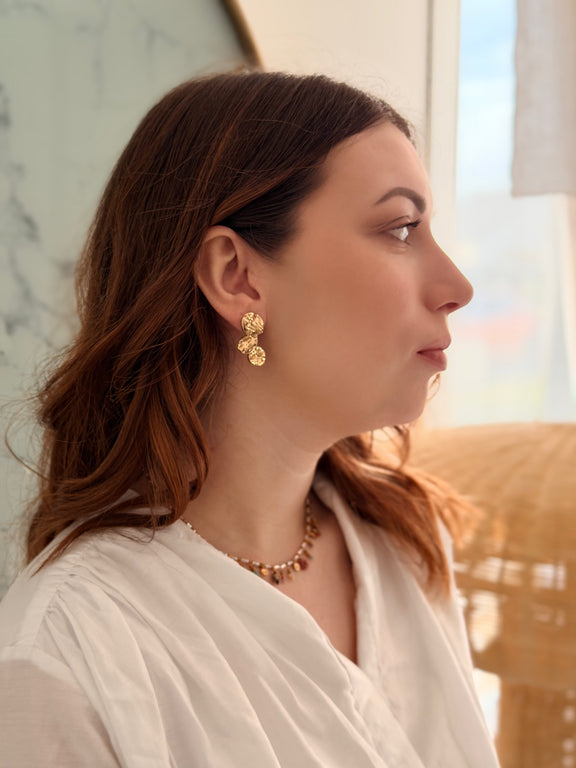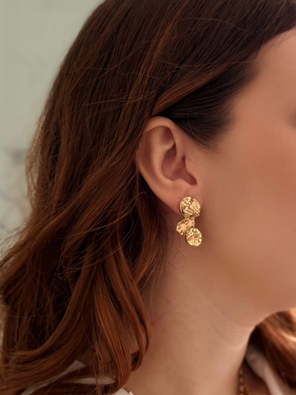 Inspirées par la finesse des pétales, les boucles Dahlia dévoilent un design floral à trois pétales dorés, à la fois élégant, féminin et lumineux. Leur format délicat (1,3 cm x 3,3 cm) sublime le port de tête avec subtilité, apportant une touche de douceur raffinée et de modernité à toutes vos tenues.