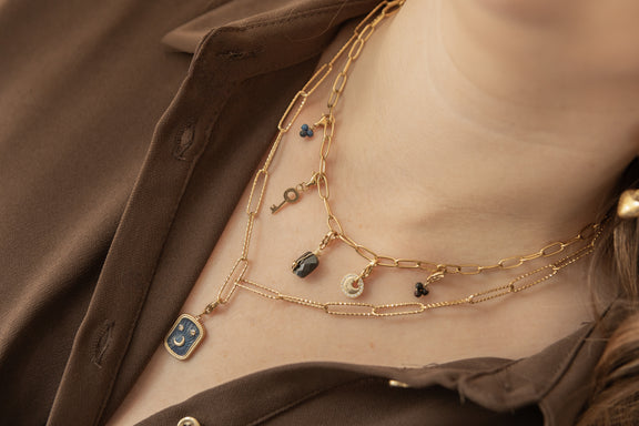 La base parfaite pour créer ton bijou unique 💫 Ce collier en maille spéciale est pensé pour accueillir tous tes charms préférés. Ajustable de 36cm + 5cm, il devient le terrain de jeu idéal pour accumuler et mixer tes charms selon ton style.