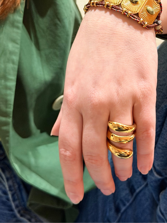 La bague Emma dévoile un ruban doré tournant, minimaliste et raffiné, qui capte la lumière à chaque mouvement. Une pièce moderne et affirmée, pensée pour sublimer la main avec élégance et style, seule ou en accumulation.
