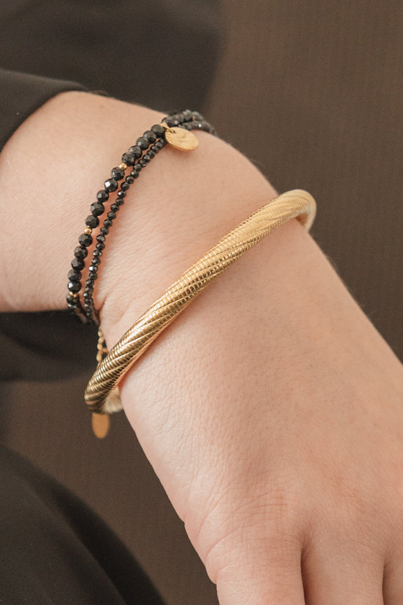 Simple, classe et indémodable ✨ Le jonc Étienne est réalisé en acier inoxydable avec un effet strié qui capte joliment la lumière. Son design minimaliste en fait un bijou qui s’associe à tout, du look casual au plus habillé. Avec son diamètre de 7 cm, il se porte facilement au quotidien comme en soirée.