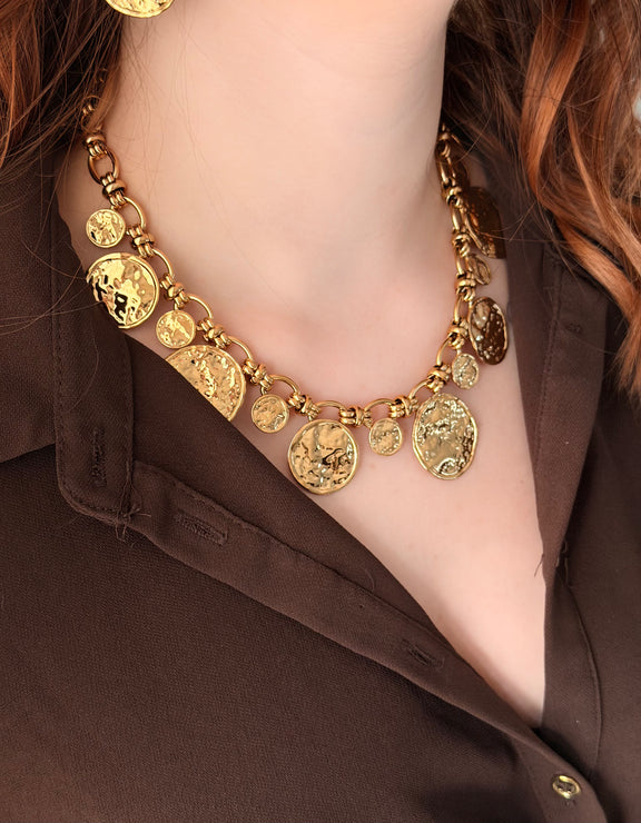 Élevez votre style avec le collier Gabin, une chaîne ovale alternée de sequins martelés qui captent la lumière et ajoutent une touche de raffinement à chaque mouvement. Son design moderne et texturé fait de ce collier un accessoire à la fois élégant et affirmé.