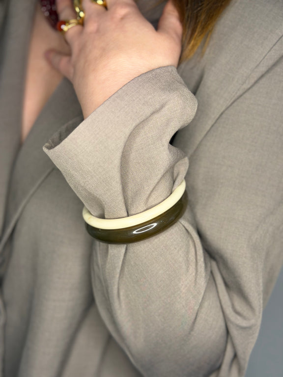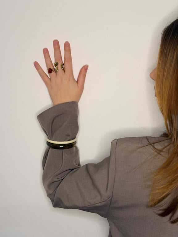 Le lot Livia réunit deux joncs dégradés en résine, pensés pour jouer avec la lumière et mettre en valeur chaque geste. Minimalistes mais forts en caractère, ils se portent seuls ou en accumulation pour affirmer votre style avec audace. Une pièce parfaite pour celles qui veulent exprimer leur énergie et leur féminité.
