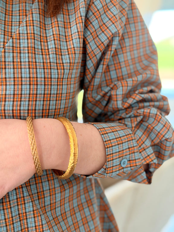 Le jonc Max présente un design tressé ouvert en acier inoxydable, minimaliste et résolument affirmé. Sa taille réglable permet un port confortable et polyvalent, parfait pour porter seul ou en accumulation et apporter une touche de caractère et de modernité à votre poignet. Une pièce pensée pour s’affirmer avec style et puissance.