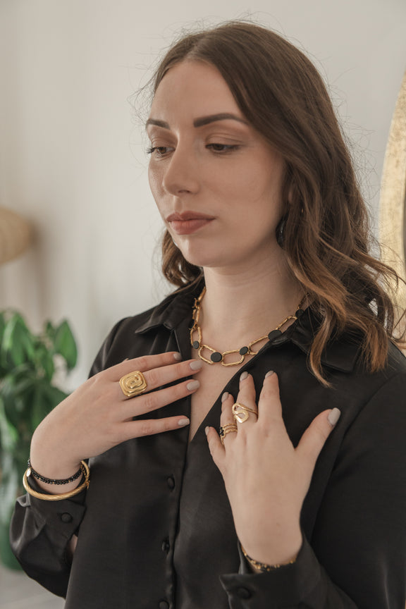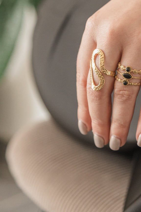 udacieuse et originale 💫 La bague Riven se distingue par son design unique entièrement conçu en acier inoxydable. Réglable, elle s’adapte à toutes les tailles de doigt et se porte aussi bien seule pour un look minimaliste que combinée avec d’autres bagues pour un style affirmé.
