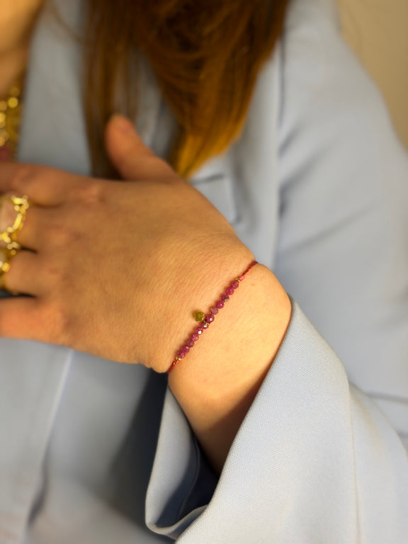 Le bracelet Ruby associe un fil délicat, des perles en pierres naturelles et un sequin lumineux pour créer un bijou fin, féminin et vibrant. Sublimé par le rubis, symbole de passion et d’énergie, il habille le poignet avec élégance et caractère. Une pièce idéale pour affirmer votre style tout en subtilité.