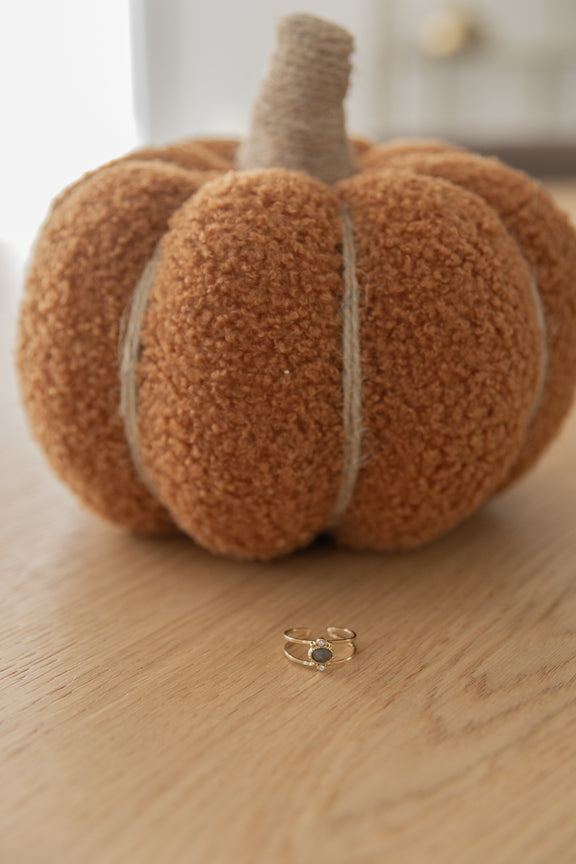 La bague Virella associe deux anneaux en acier inoxydable à une pierre naturelle ovale de Labradorite mise en valeur par deux petits cristaux scintillants. Ajustable, elle s’adapte facilement de la taille 50 à 58 pour un confort parfait.