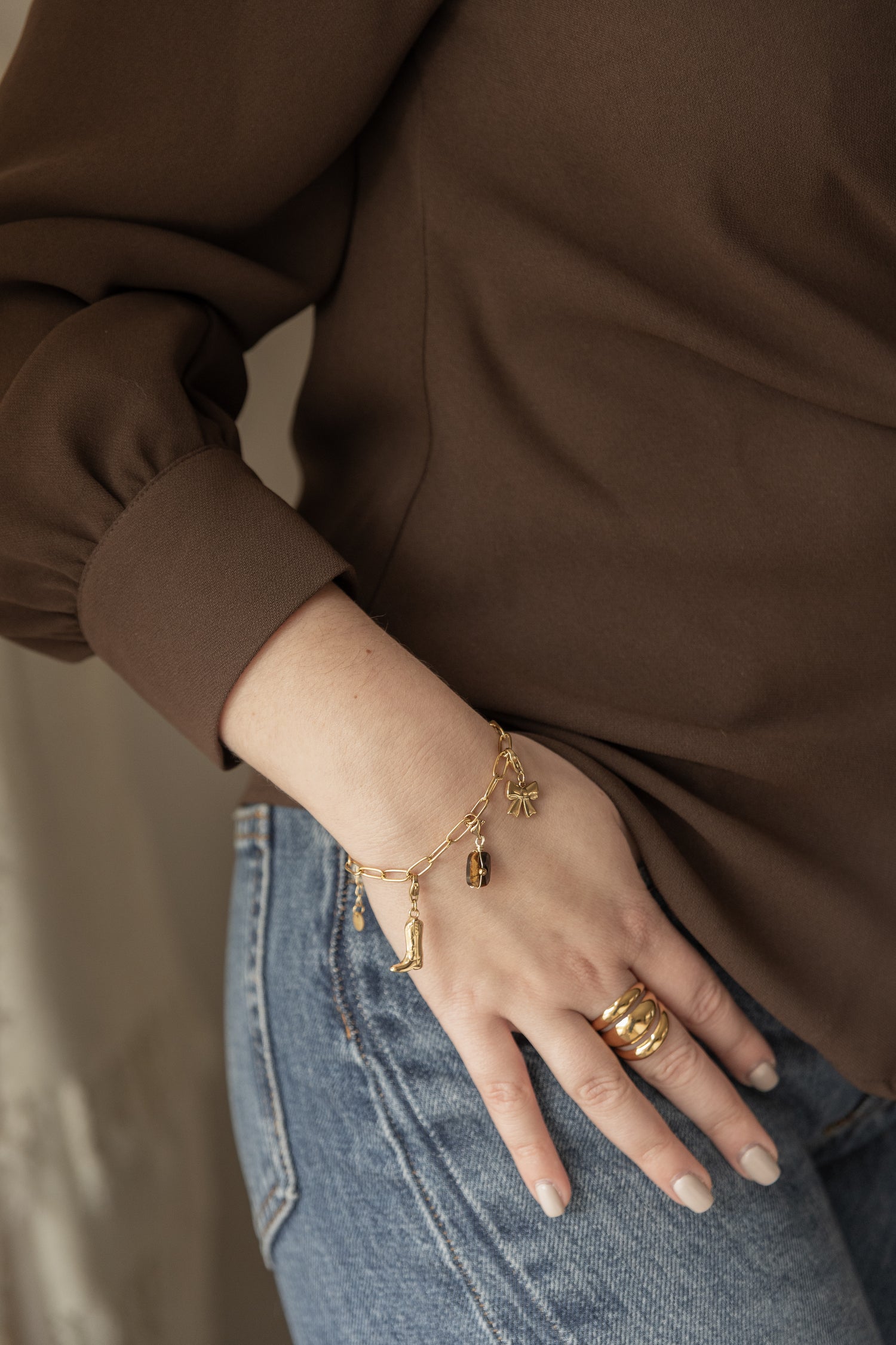 La base parfaite pour créer ton bijou unique 💫 Ce bracelet en maille spéciale est pensé pour accueillir tous tes charms préférés. Ajustable de 16 à 19 cm, il s’adapte à tous les poignets et devient le terrain de jeu idéal pour accumuler et mixer tes charms selon ton style.